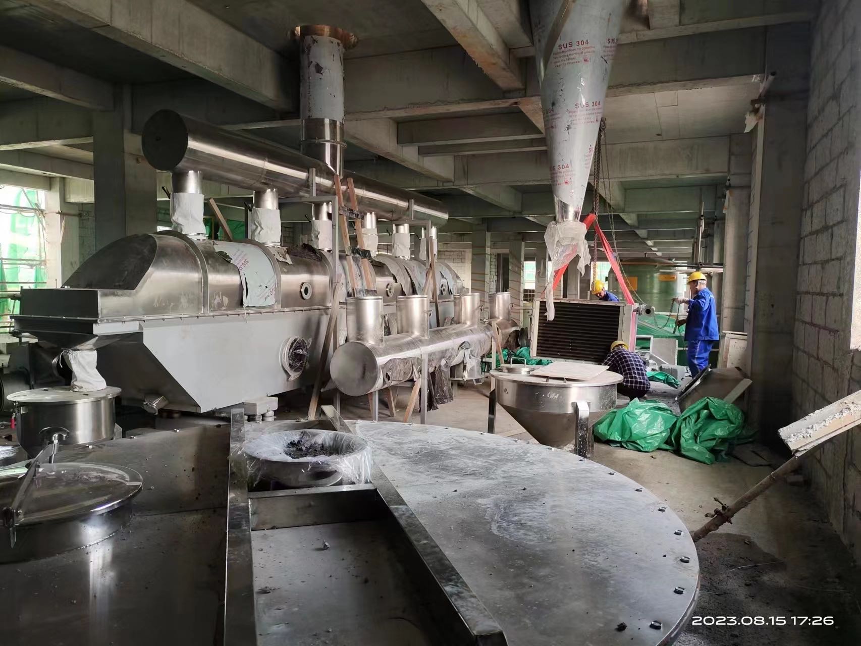 元明粉振動流化床干燥機客戶現(xiàn)場安裝中